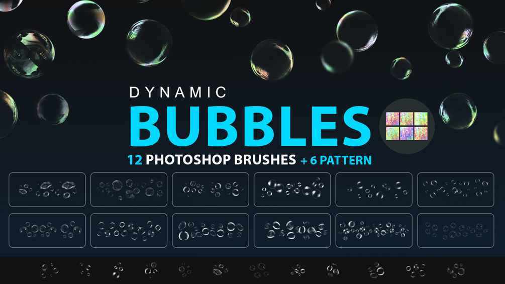 12 high quality Dynamic water Bubbles brushes + 6 Pattern, look at the examples in the video you can Paint with Bubbles and change your Bubbles colors to get a colorful pack right away!